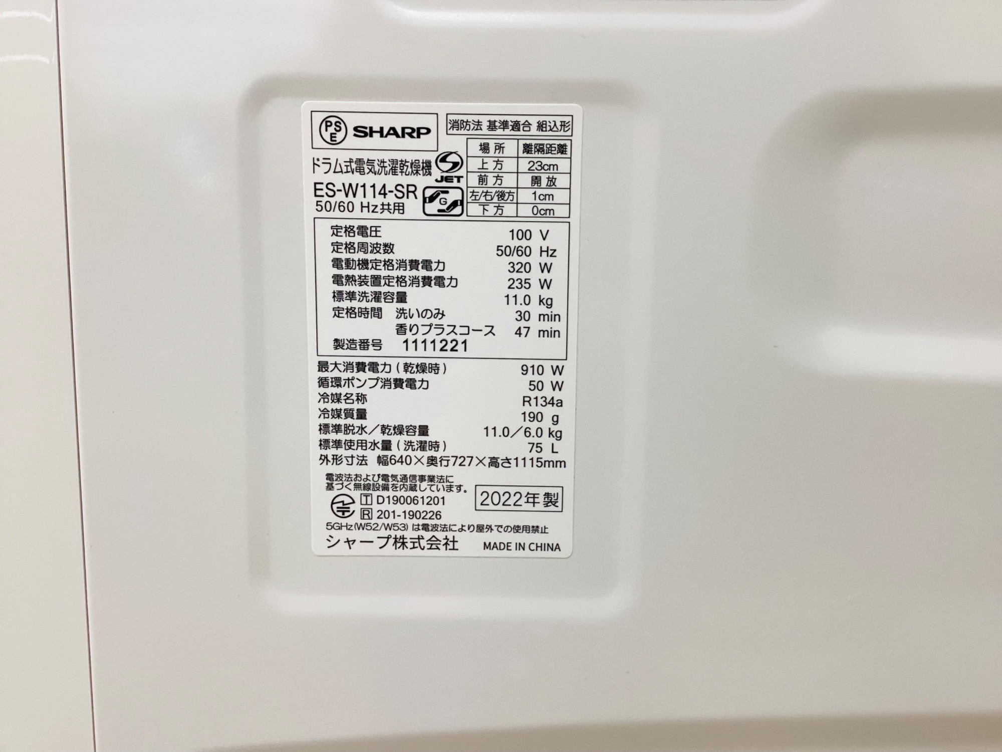 ・型番:ES-W114-SR