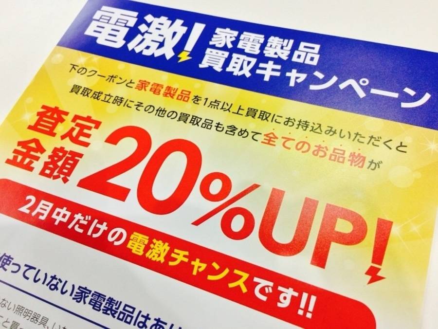 炊飯器や電気ポットなどのキッチン家電はもちろん、ドライヤーやアイロンでも買い取り金額20%UPになります!!