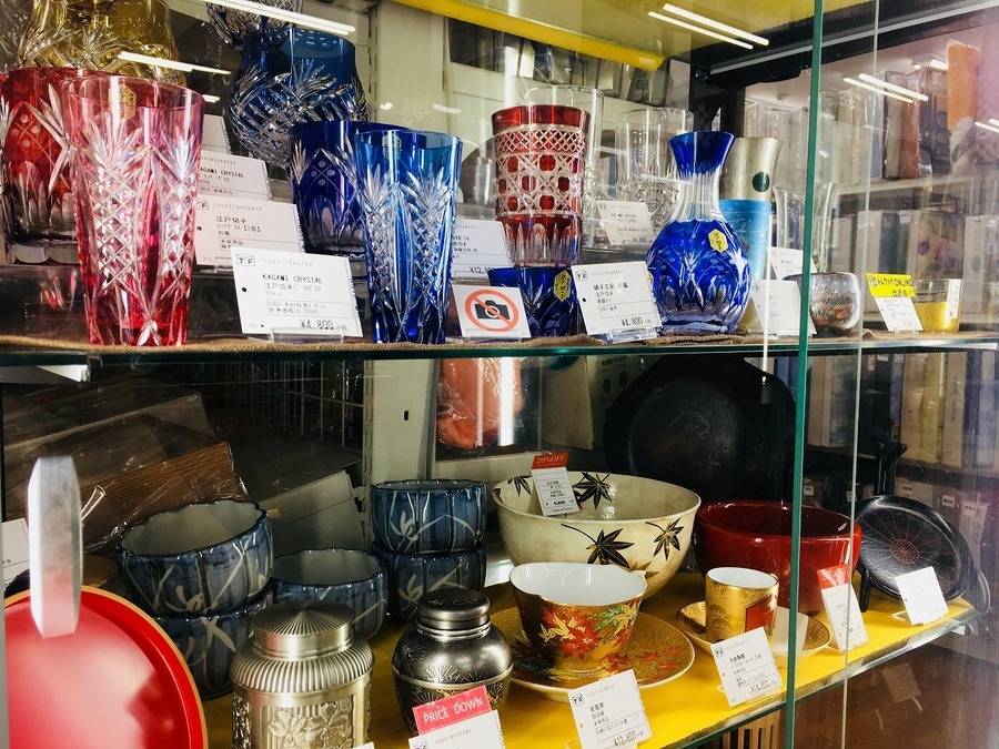 店頭では江戸切子などのグラス以外にも