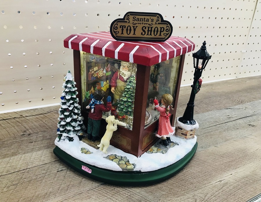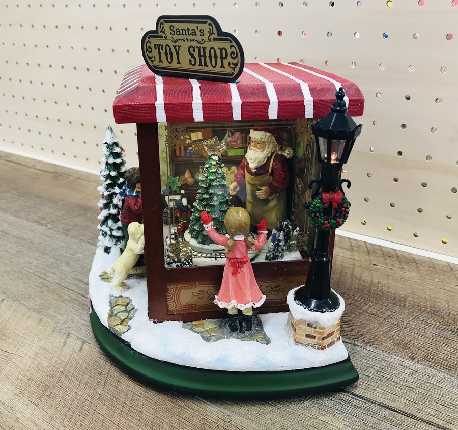 クリスマスの定番ソングが数曲オルゴールで流れ出し、おもちゃ屋さんの中の列車が動き出しますよ♪