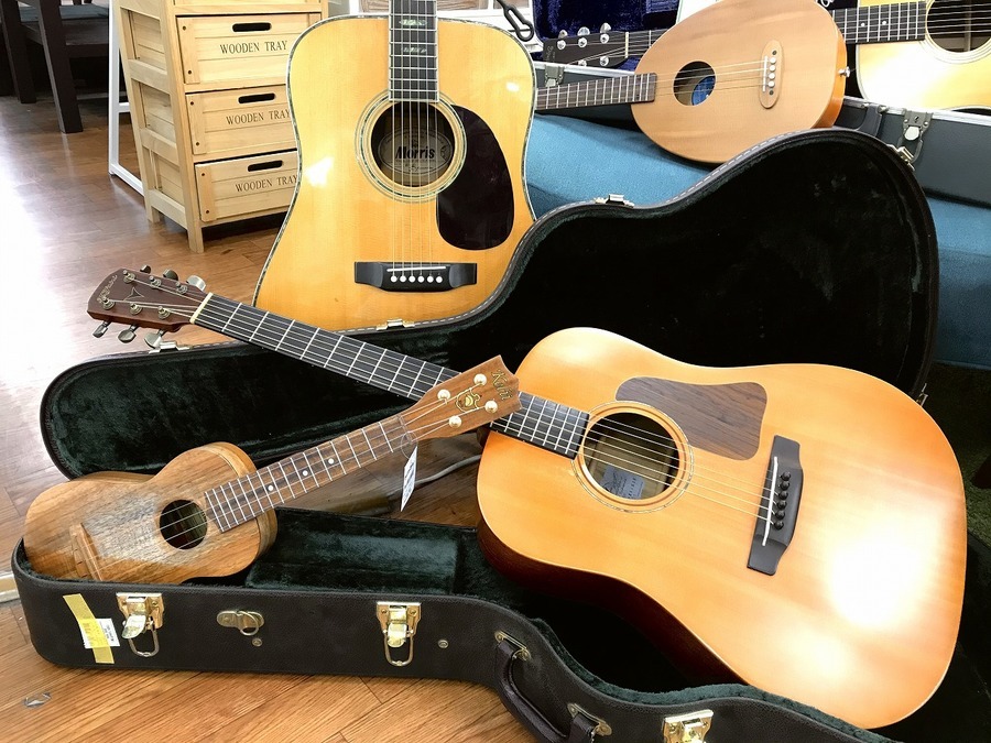 憧れのヴィンテージギターやMartinやGIBSONやFENDER等のブランドギター、今から始めたい方にもオススメのアコースティックギターや、コンパクトで気軽に始められるウクレレ、