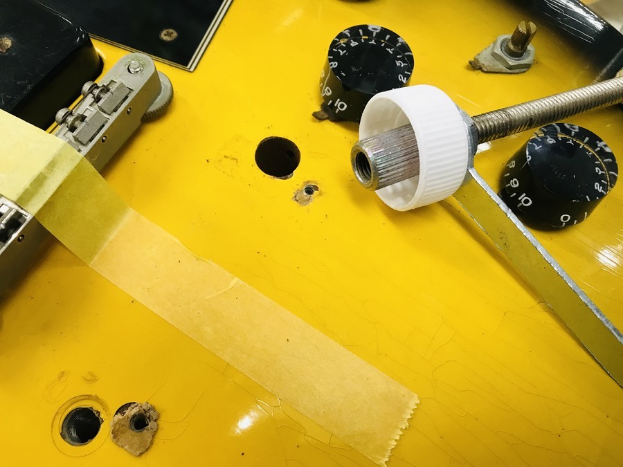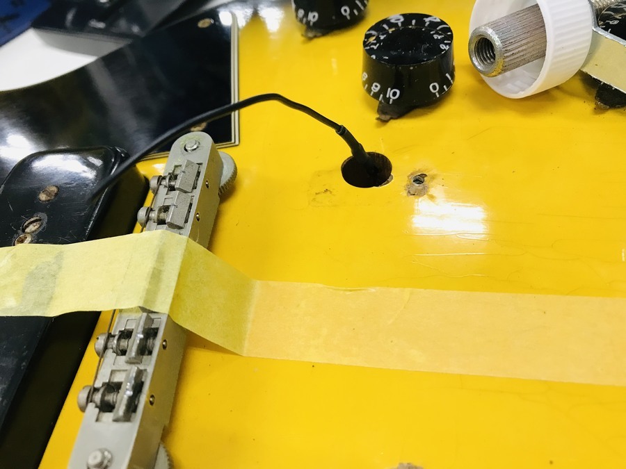 中々太い針金のような線なのでビグスビーとボディの間に噛ませたらボディが凹んでしまいそうです。