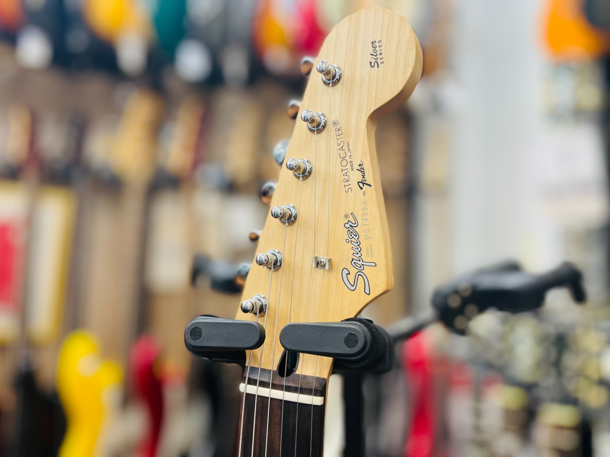 Squier by Fender「Silver Series」SST-R(1994年頃製)は、日本製ならではの丁寧な作りと高い演奏性が魅力のストラトキャスタータイプです。1990年代前半に登場したシルバーシリーズは、コストパフォーマンスに優れた国産モデルとして人気を集めました。25.5インチスケールのメイプルネック、3シングルコイルPUによる王道のストラトサウンドを備え、クリーンから歪みまで幅広く対応し、初心者からサブ機、改造ベースとしてもおすすめの一本です。
