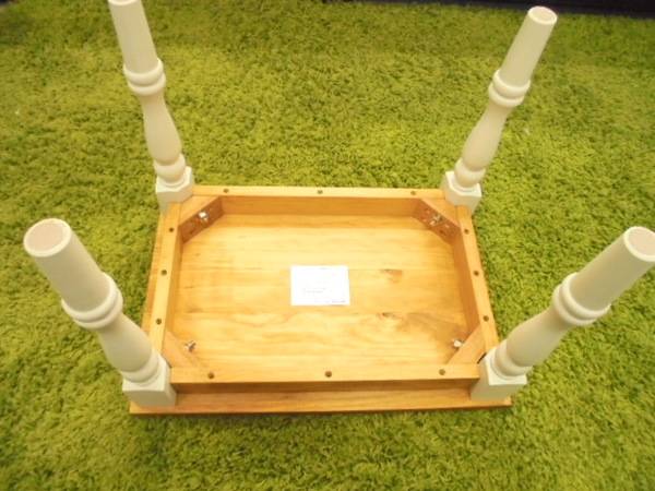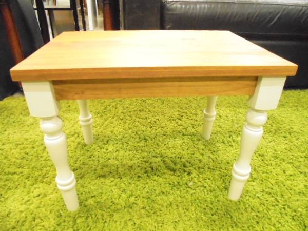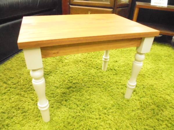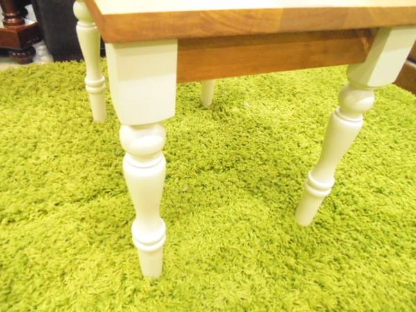 木目がきれいなナチュラルの天板に白いロココ調の脚がついています。