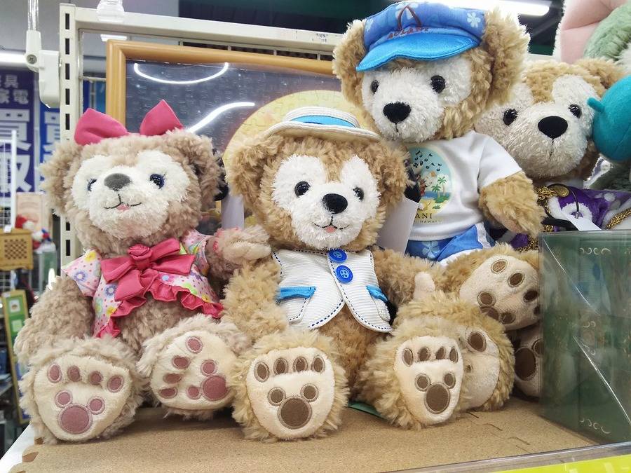 定番のダッフィー、シェリーメイを始めとしたグッズ全般。