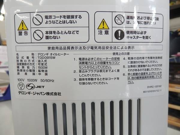 定番のデロンギ!オイルヒーター買い取りました♪【吉川店】