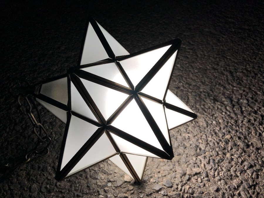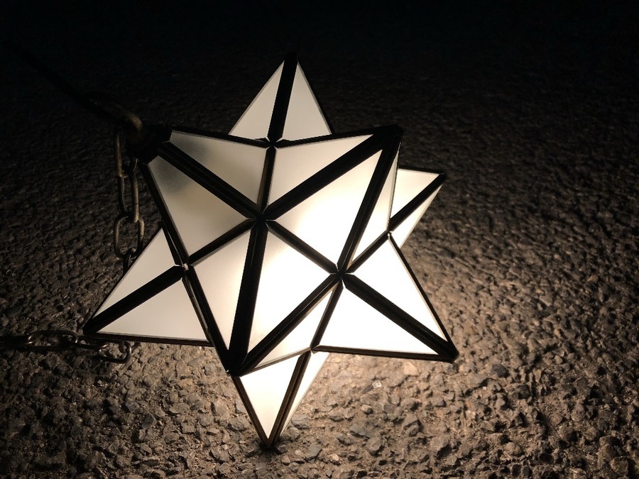 真鍮フレームに星形のスモークガラスの中に電球が入る照明です。