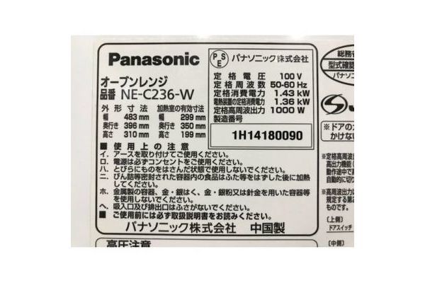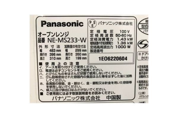 品名:Panasonic 2016年製 1000W オーブンレンジ