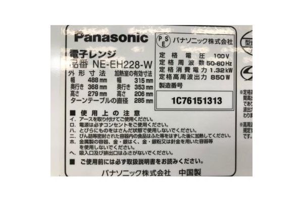 品名:Panasonic 2016年製 850W 電子レンジ
