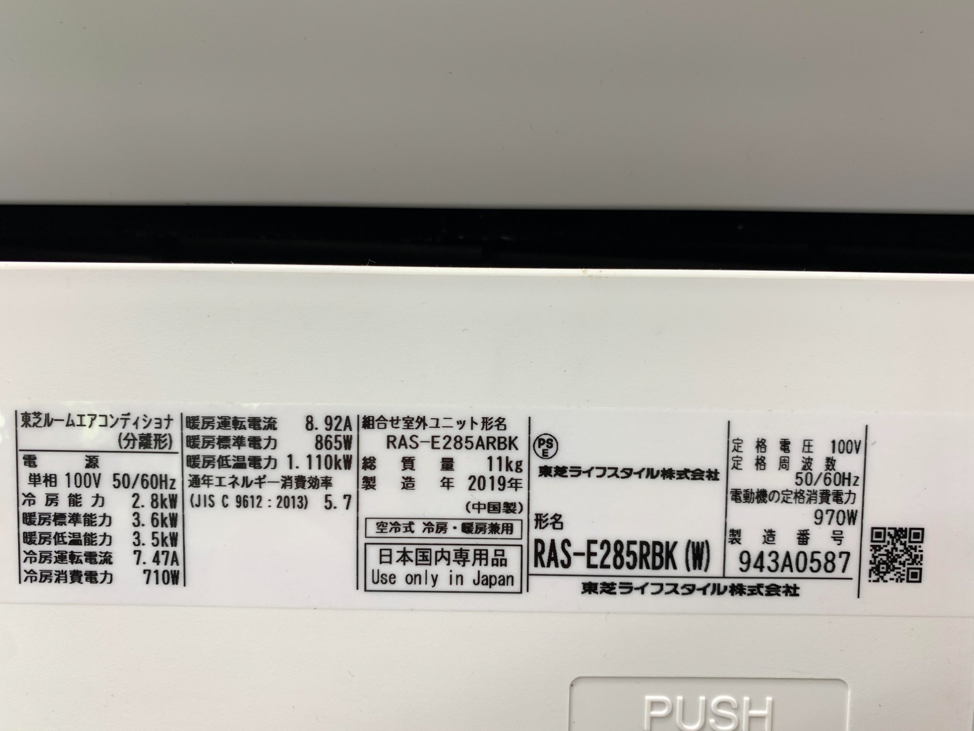 型番:RAS-E285RBK