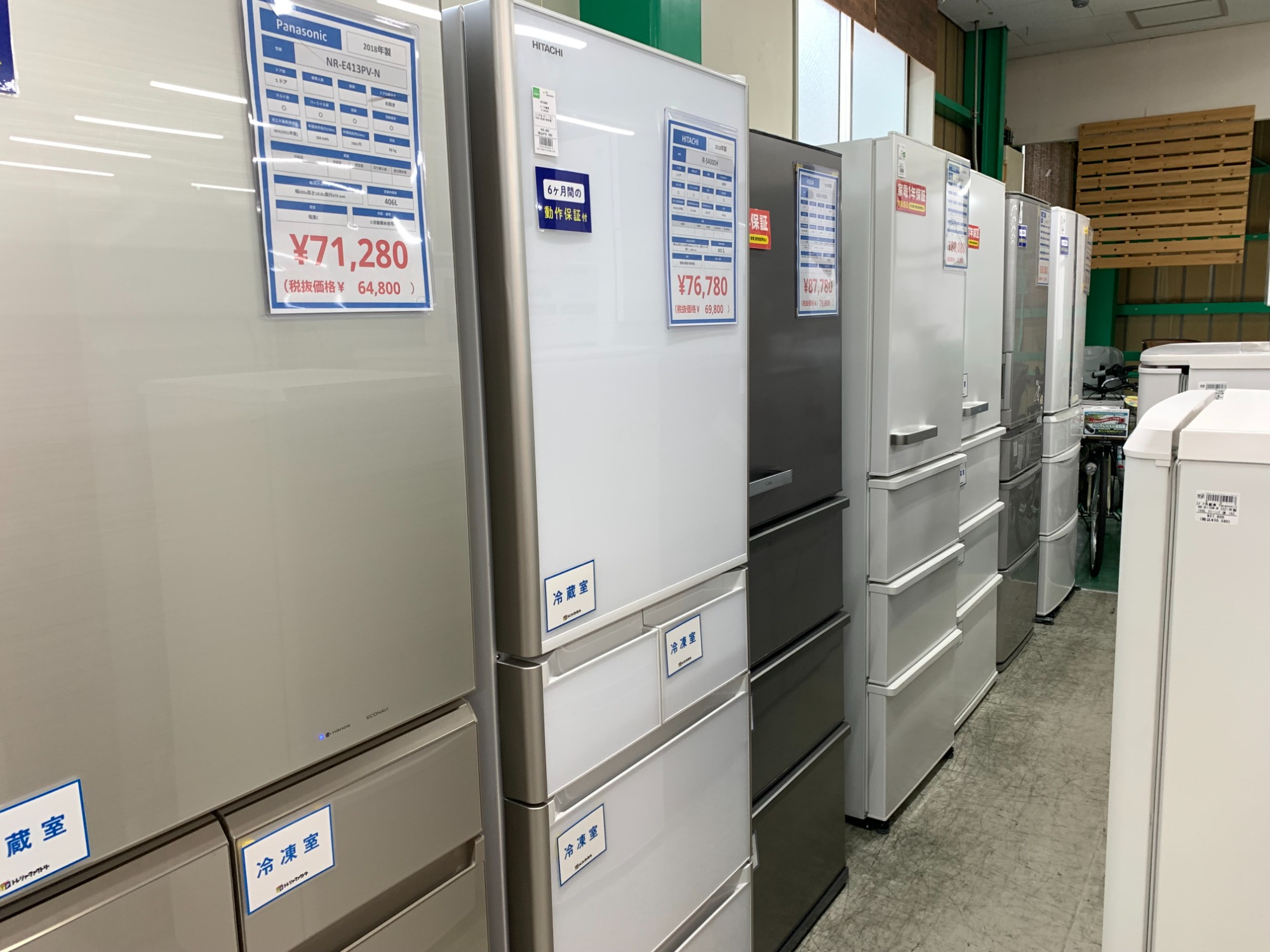 冷蔵庫、洗濯機は常時大量展示しております!