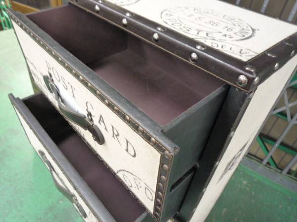 このチェストはキャンパス地メインでレザー調のデザイン・・・しかも!このデザイン♪