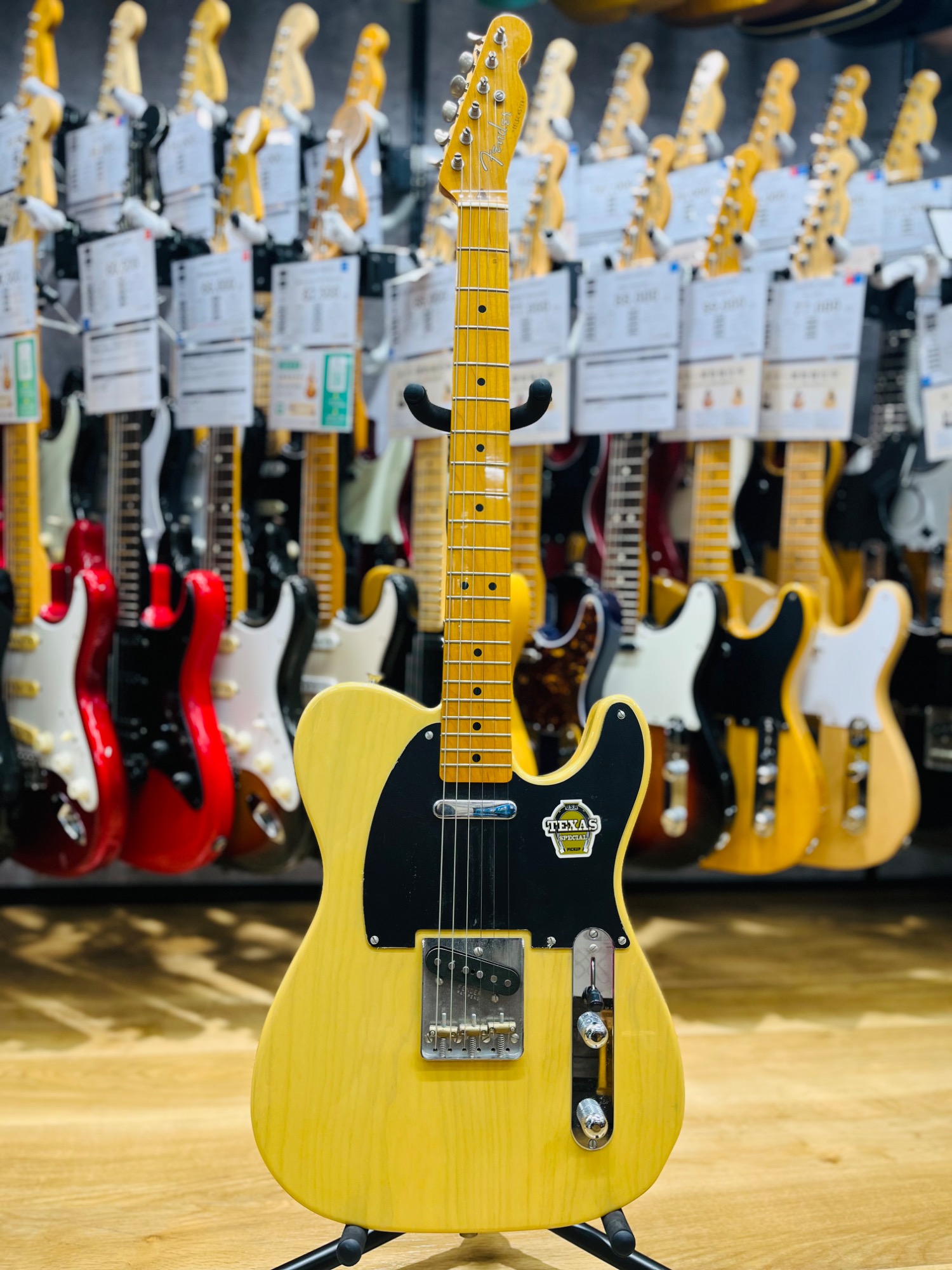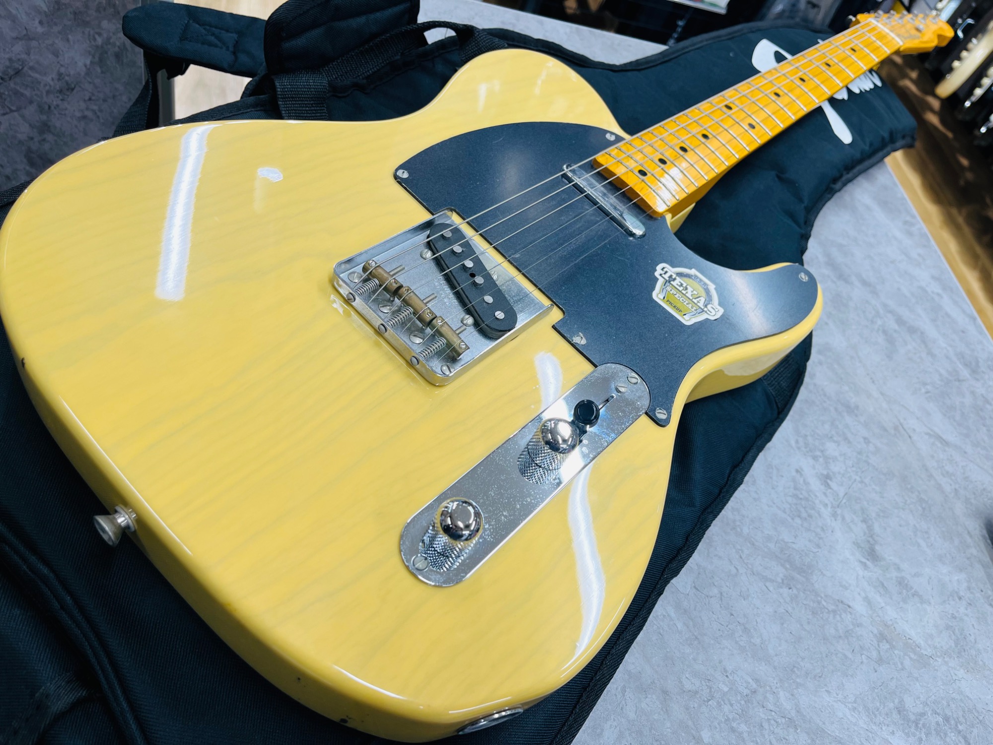 ピックガードにはまだフィルムが残っており、Texas specialのステッカーも残っている美品の一本です!