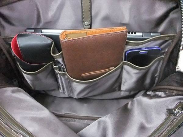 中は、A4のファイルが余裕で入るほど広く、ポケットも色んなサイズがあるので、使いやすそうです!