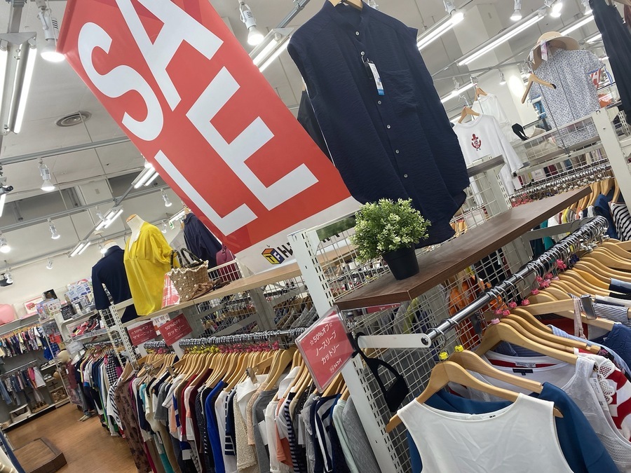 ただいま夏モノ衣類SALE開催中です!表示価格から最大50%オフと大変