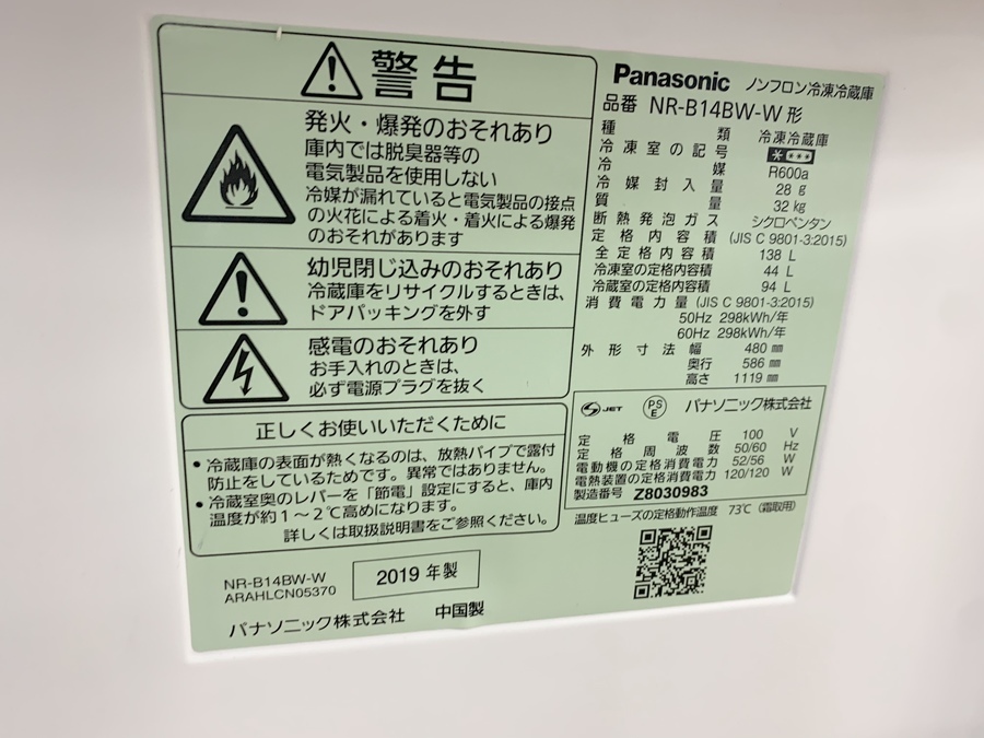 Panasonic(パナソニック) 2ドア冷蔵庫 2019年製買取入荷致しました!