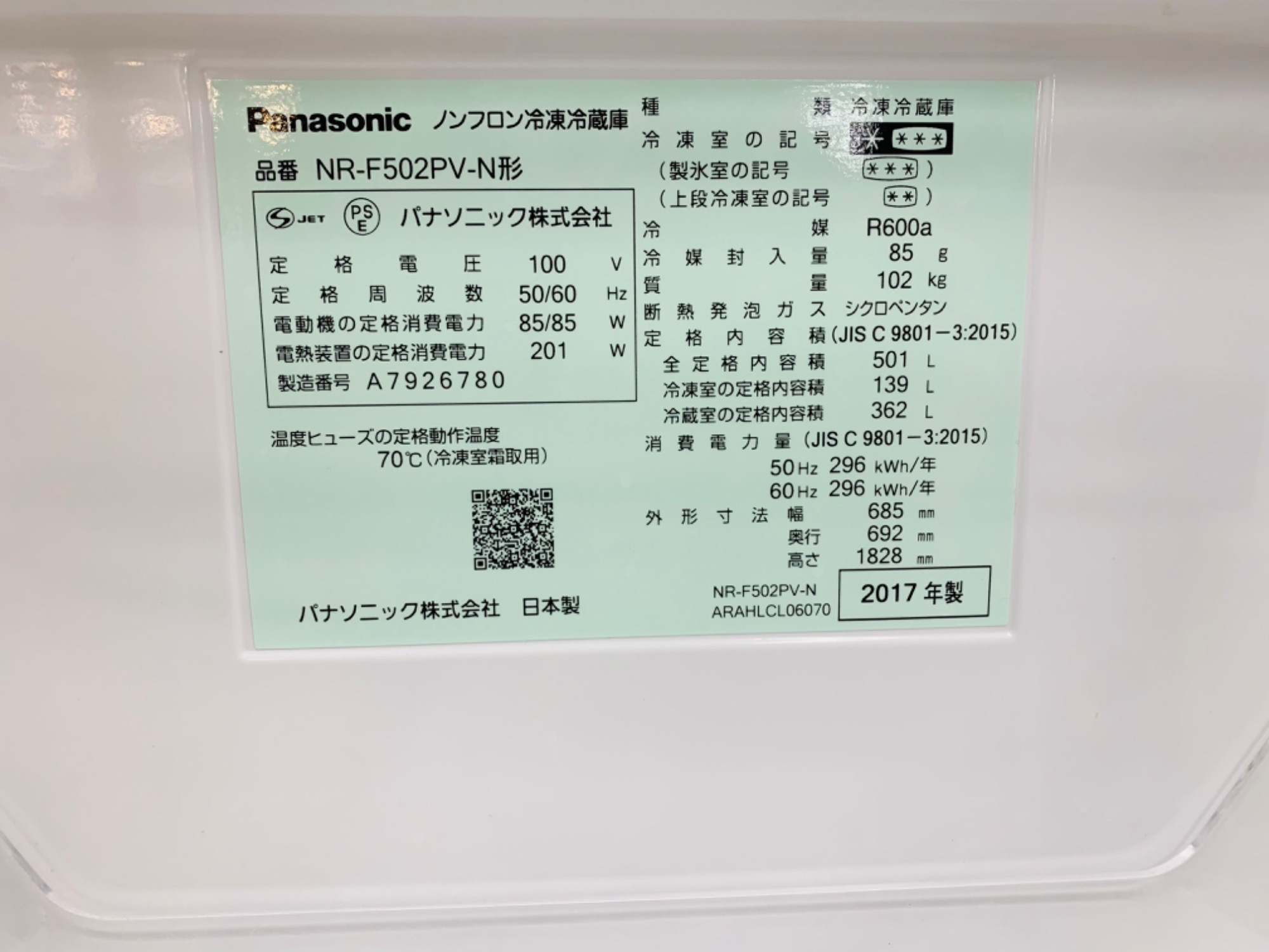 型番 NR-F502PV-N