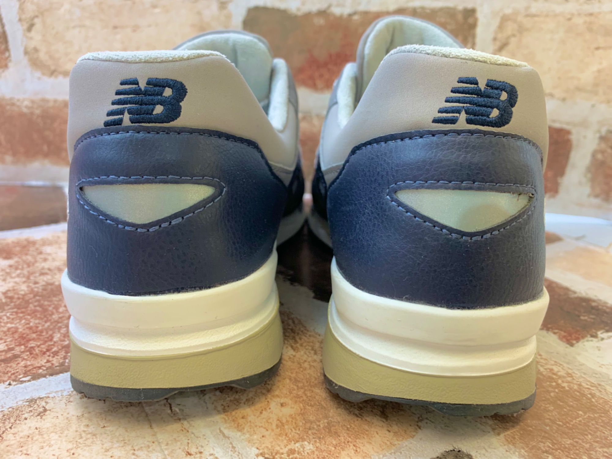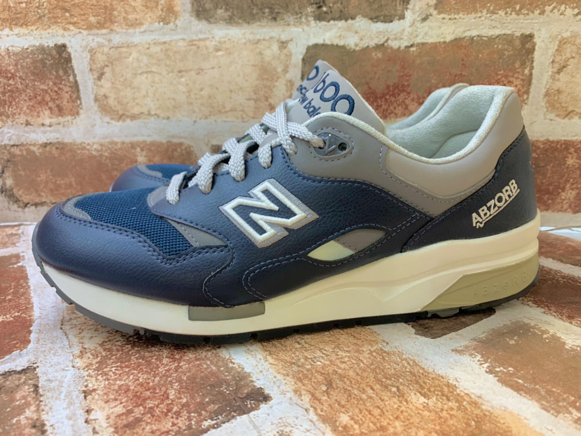 ネイビーとグレーの落ち着いた印象のスニーカーになります!