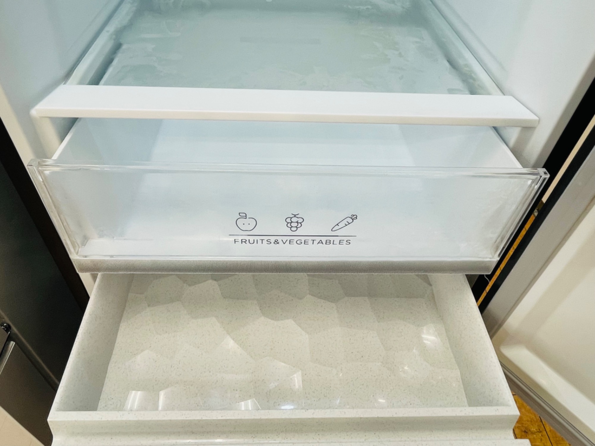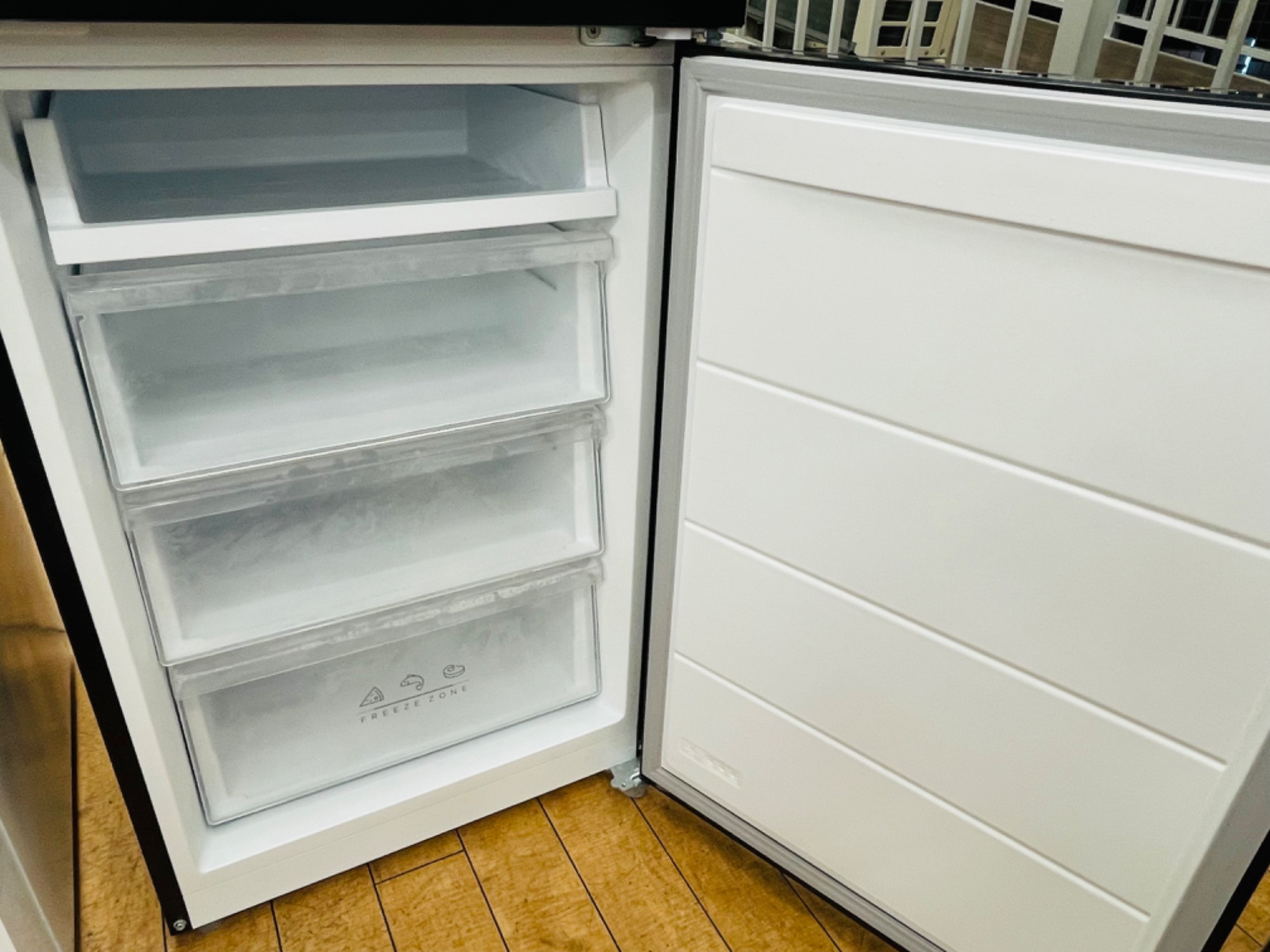 ヘコミ、冷凍庫の棚に色焼けがあります。