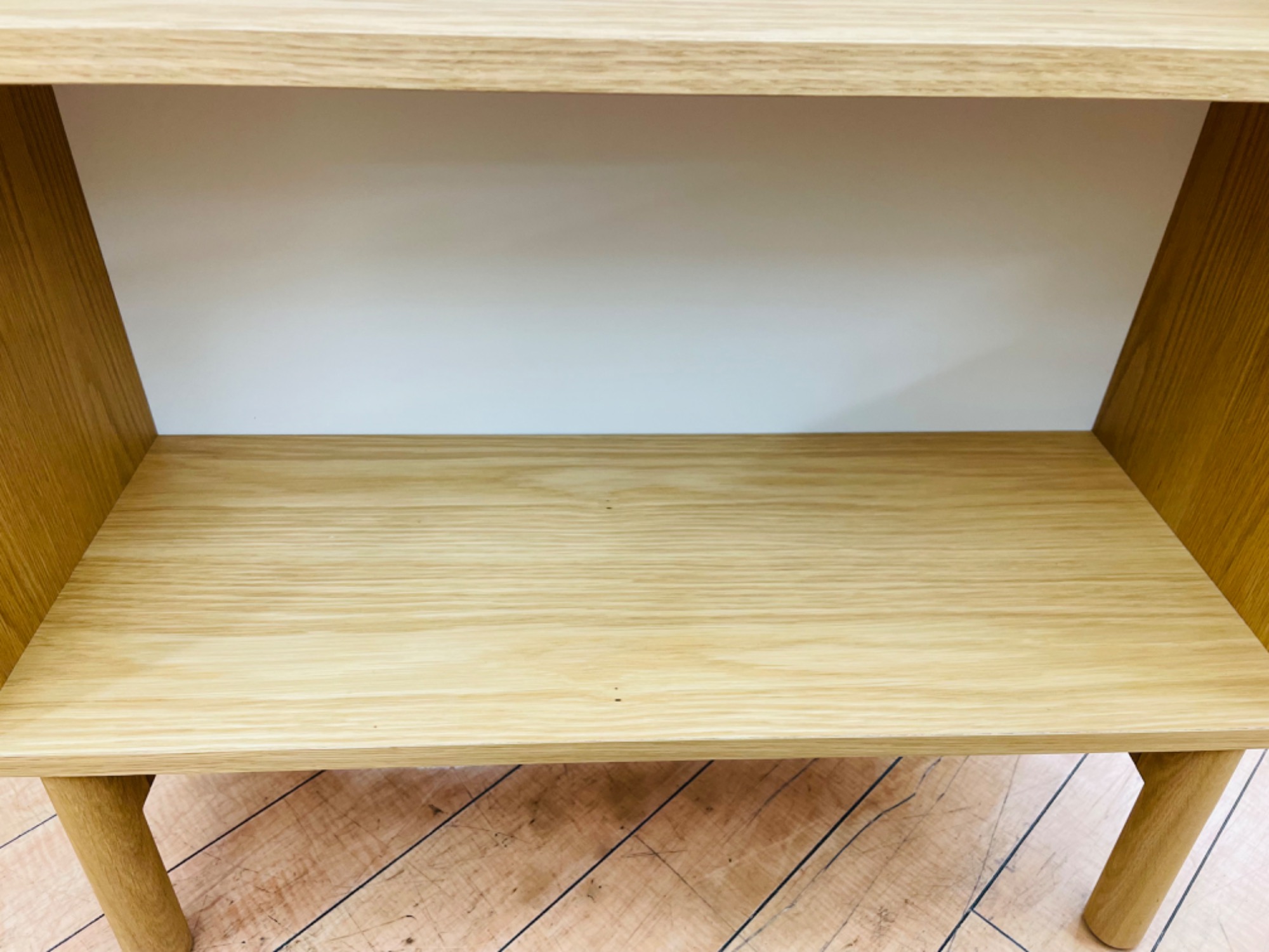 シンプルな棚に丸い脚が魅力の家具になります!