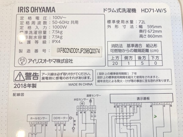 IRIS OHYAMA(アイリスオーヤマ)ドラム式洗濯機(HD71-W/S)が買取入荷致しました!【二俣川店】