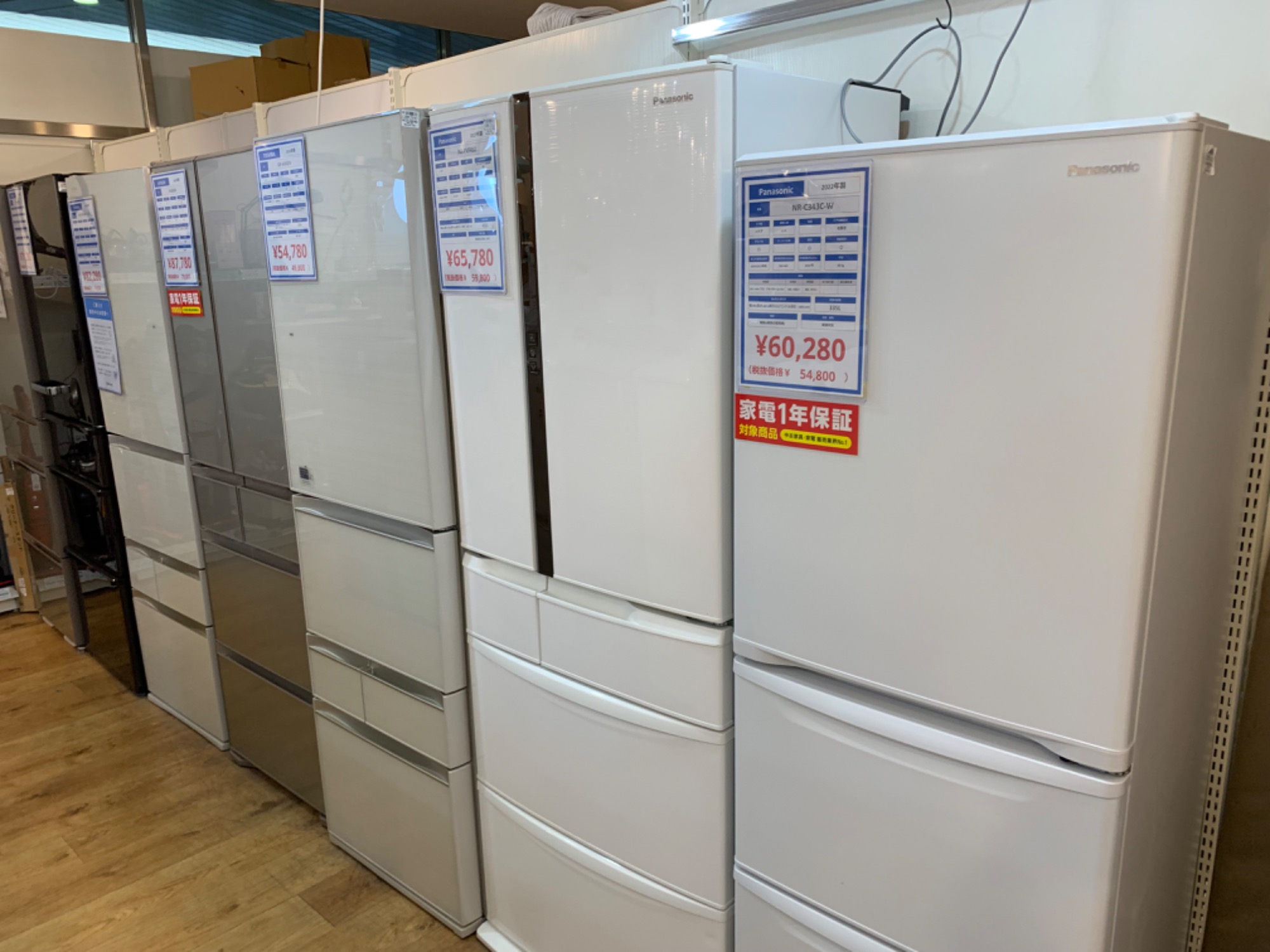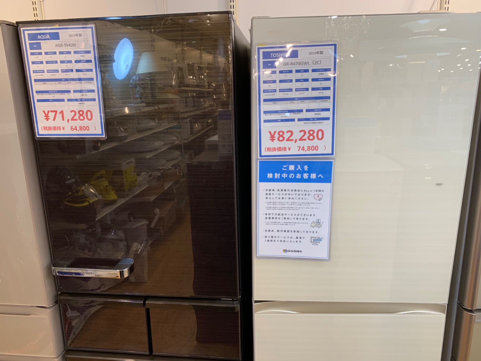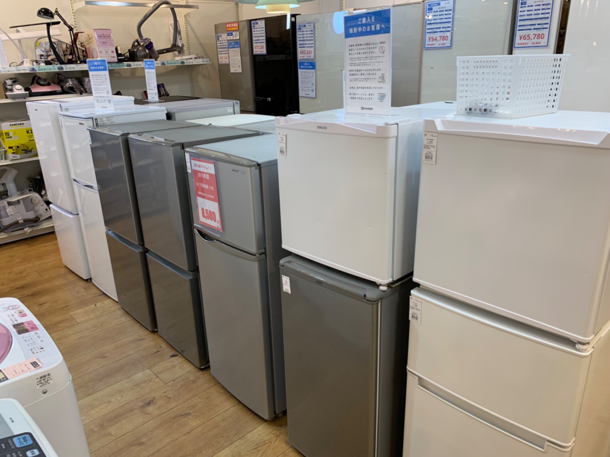 展示しております大型冷蔵庫のお値段を見直しして。