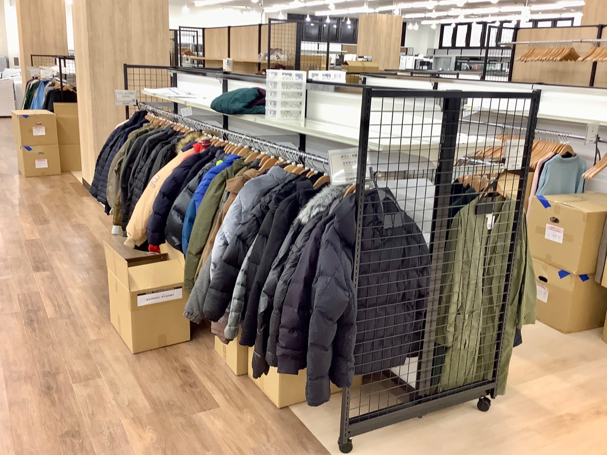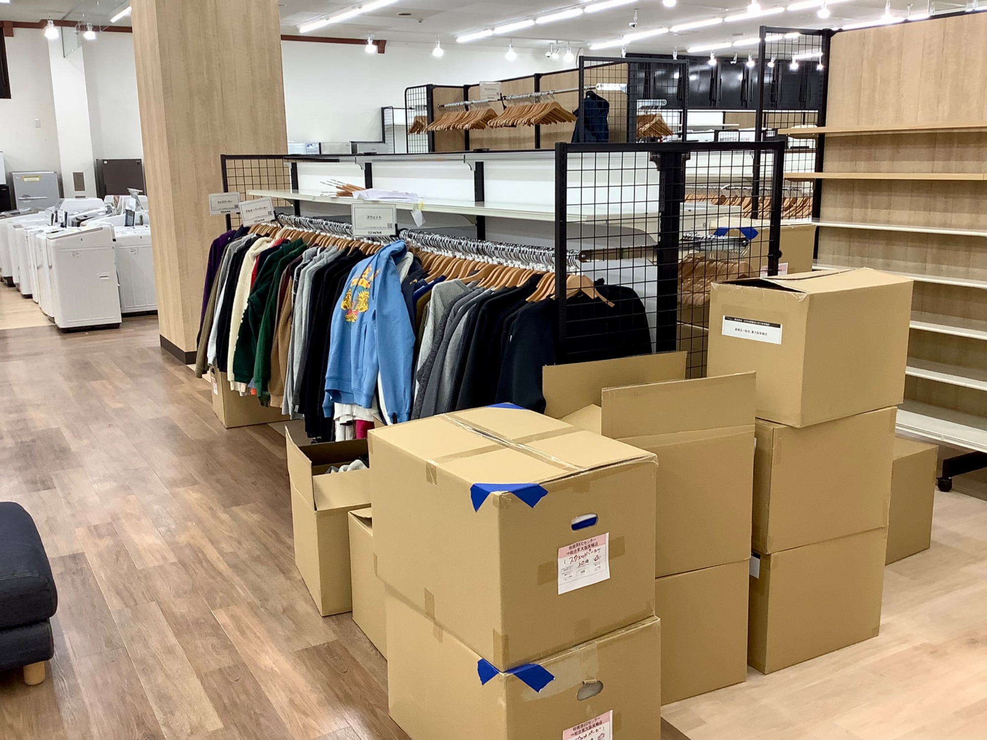 衣類も段ボール出しが始まりドンドン売り場も進んできました。