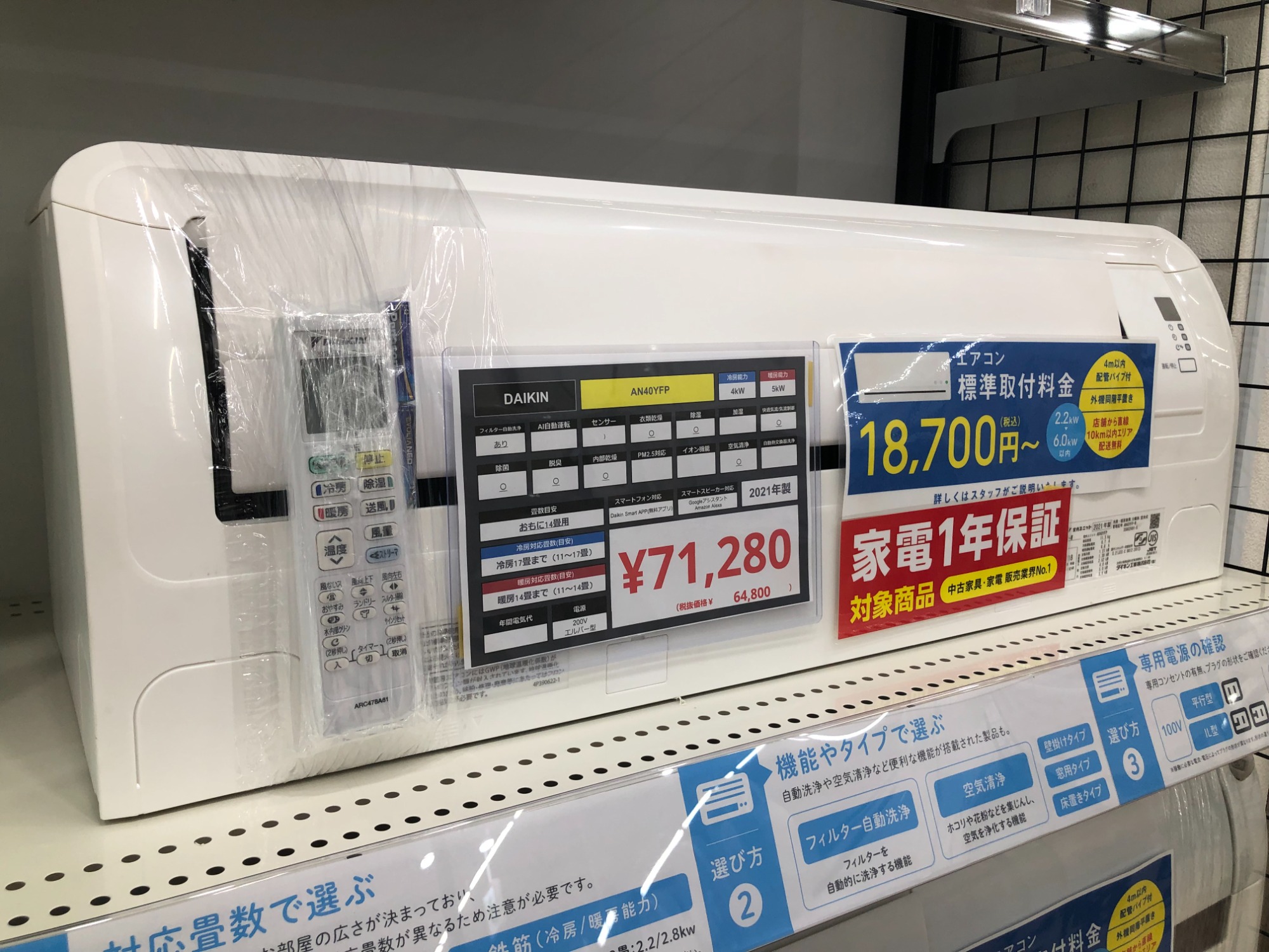 ※エアコンの販売には別途取付料金(有料)が掛かります。