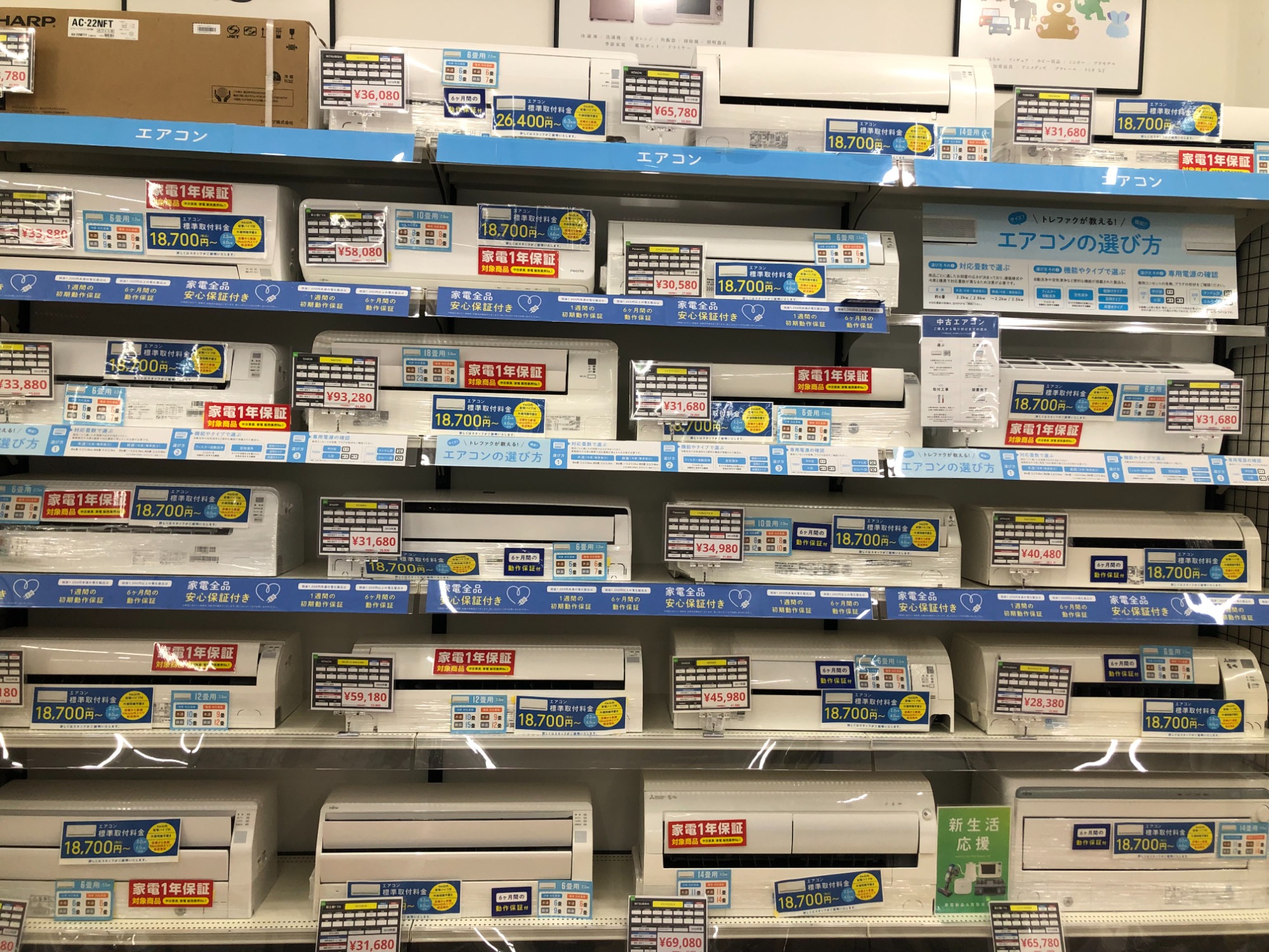 ご紹介するエアコンは全て安心の家電1年保証付きになります!