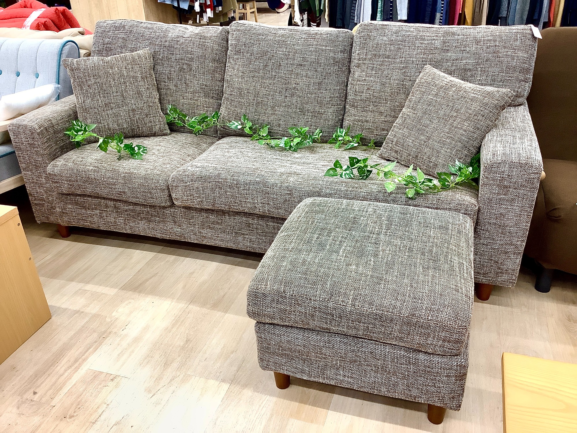 【中古家具多数展示中!】オットマン付きの3人掛けソファをご紹介します!