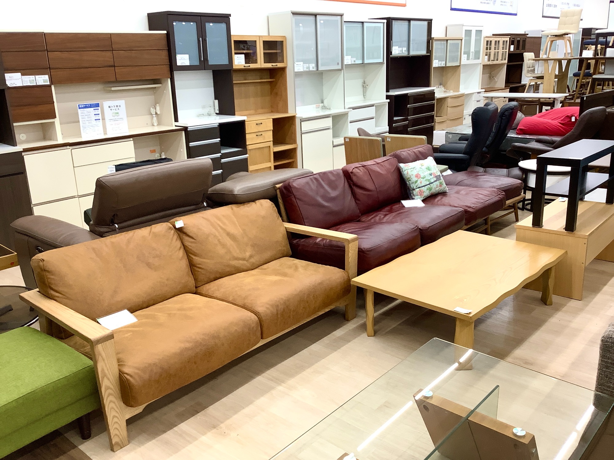当店ではお手頃価格な家具からブランド家具に、単身からファミリー向け家具まで