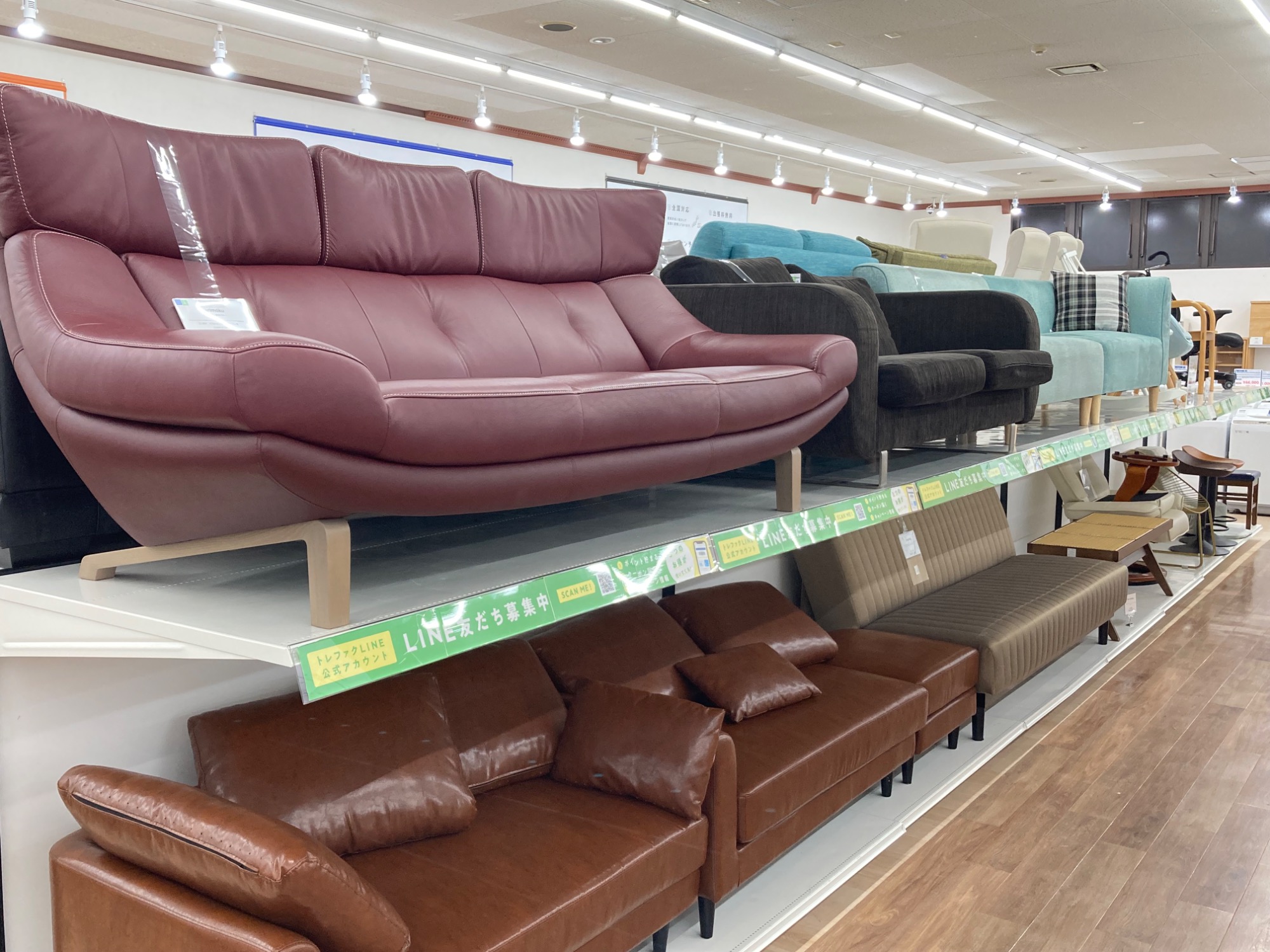 当店では1人掛けソファーからはじめ3人掛けまで