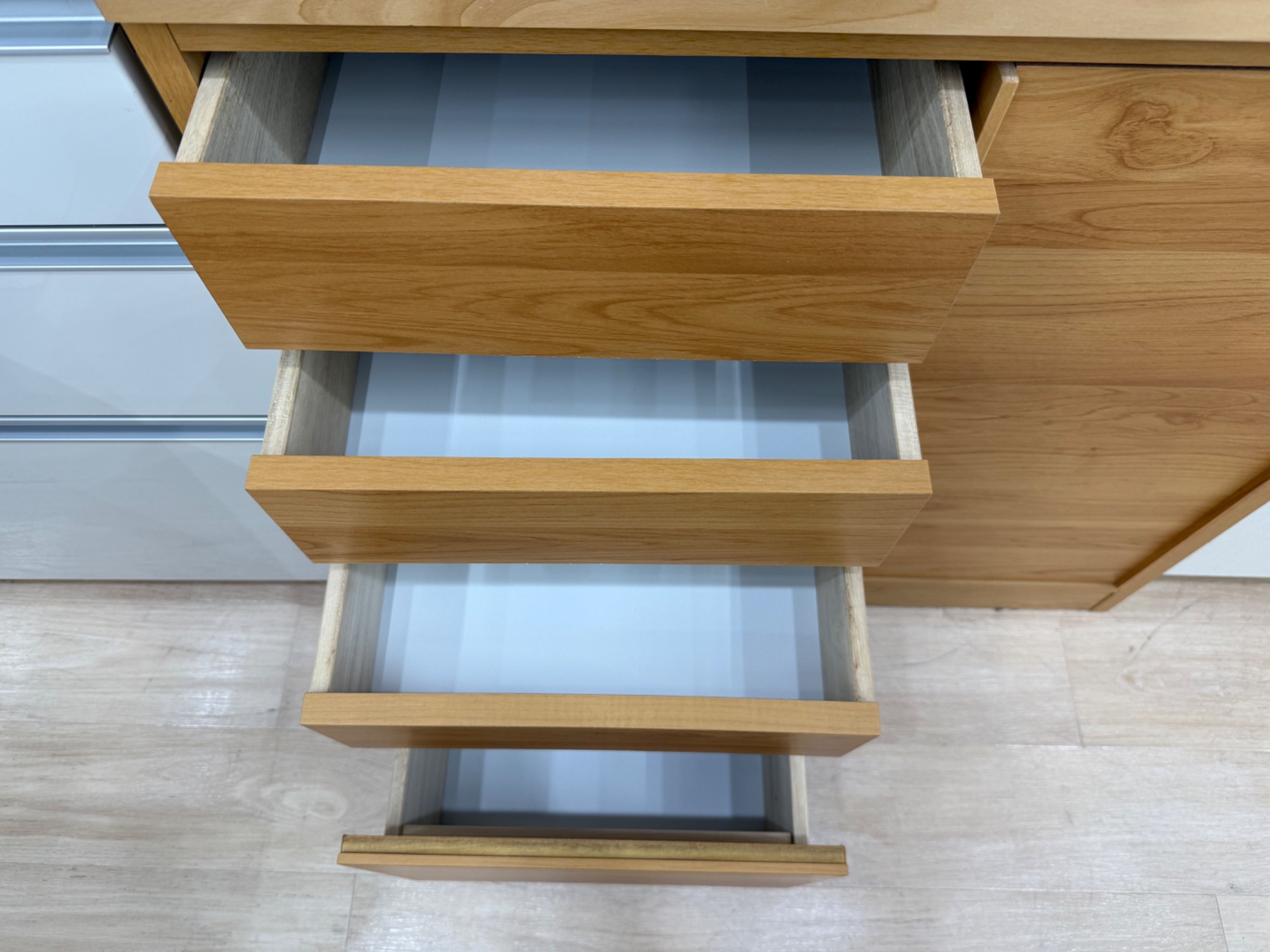 ●カラー・備考:ナチュラル・スライド扉、4段引き出し