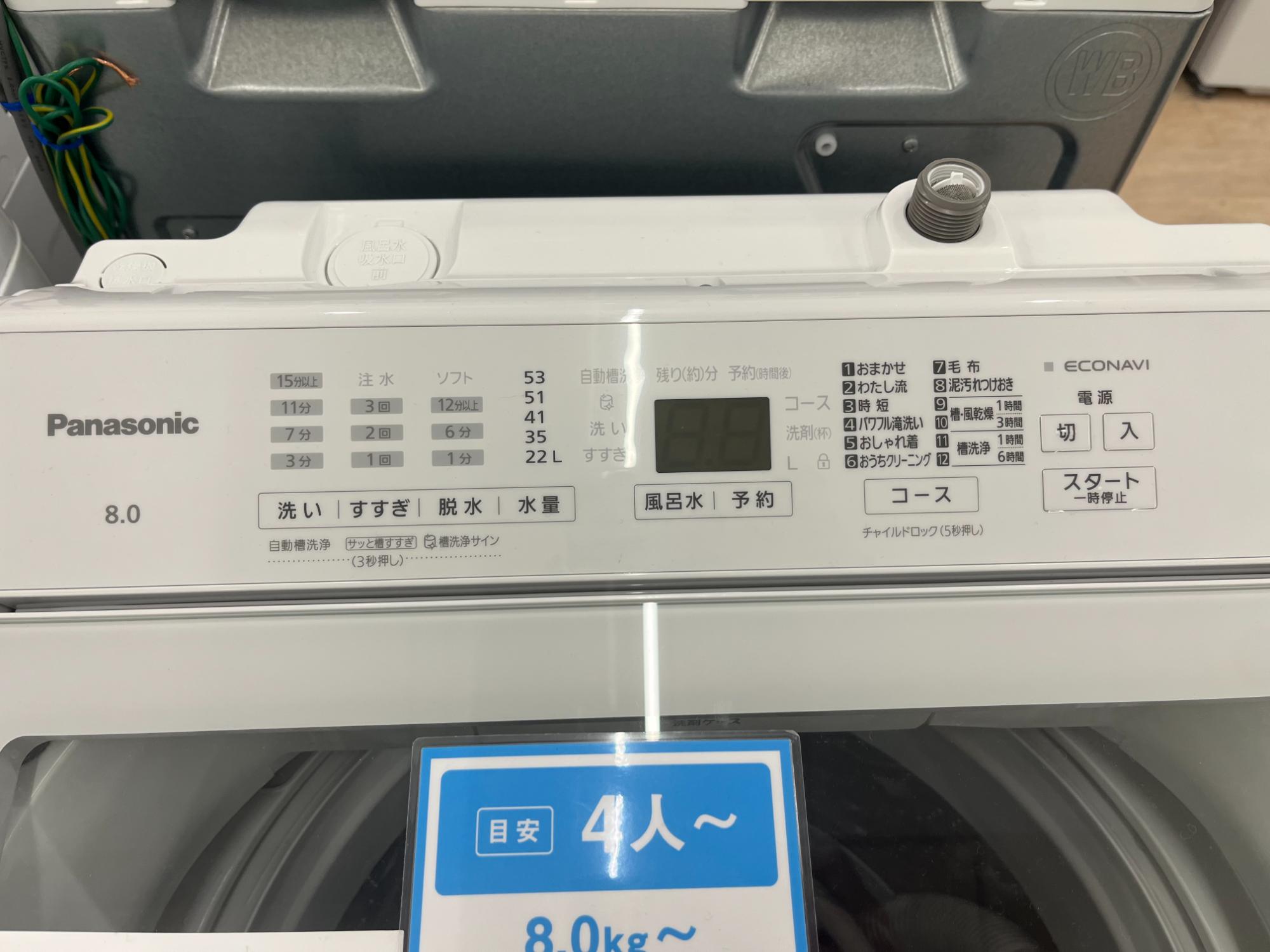 単身~ファミリー向けまで多数展開中!【Panasonic(パナソニック) | 8.0kg 洗濯機】ご紹介いたします。