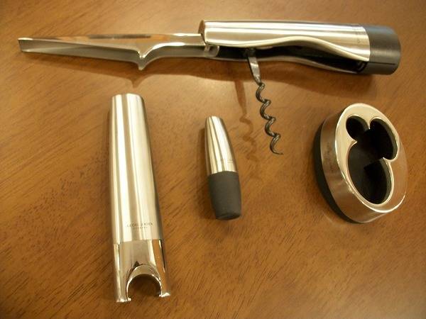 コークスクリュー、ボトルオープナー、ワインストッパーのいずれも