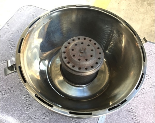 中央に炭を入れ、空気を炭に直接吹き付けます!