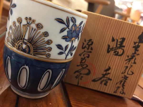 今回入荷したのは金彩が入った孔雀をモチーフにした湯呑みです。
