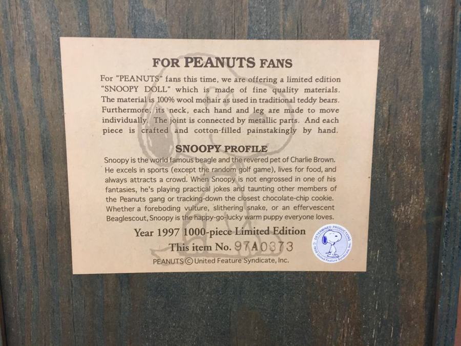 品物:1997年 リミテッドエディション 限定1000体 スヌーピー