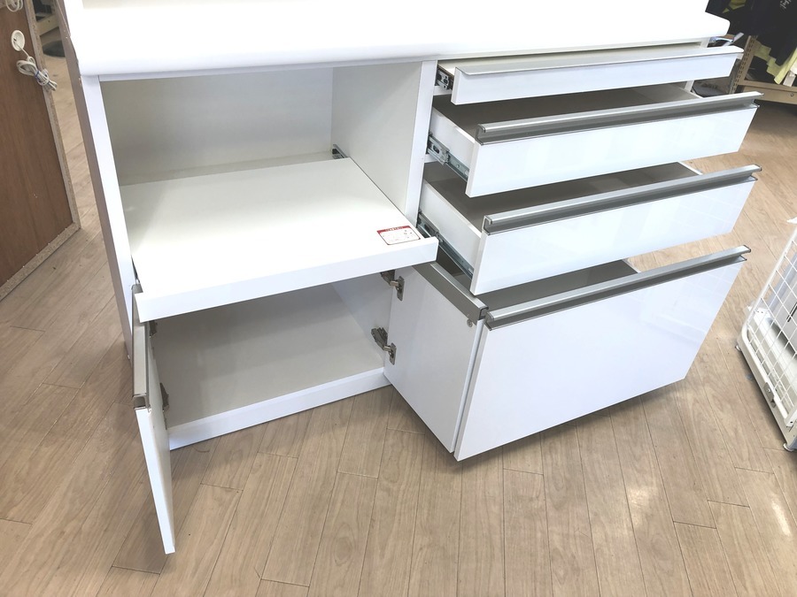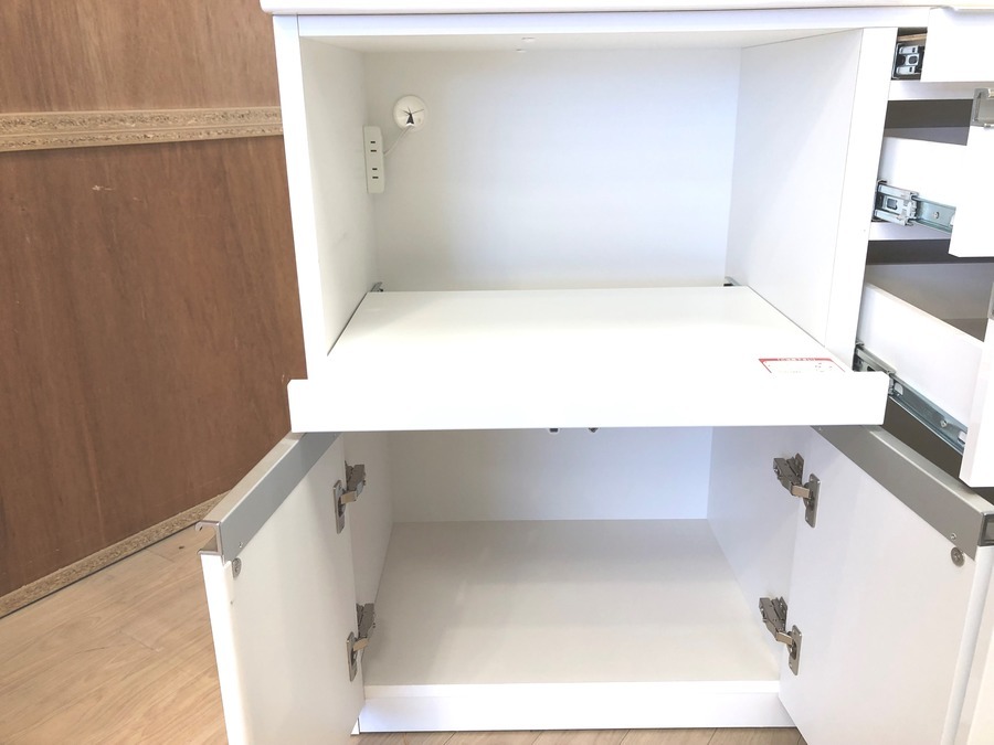 上段はスライド式の2枚扉、下段は引出し収納が付いており