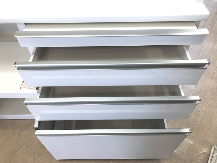 引出しのレールは優しく静かに閉まるソフトクローズ式になっており