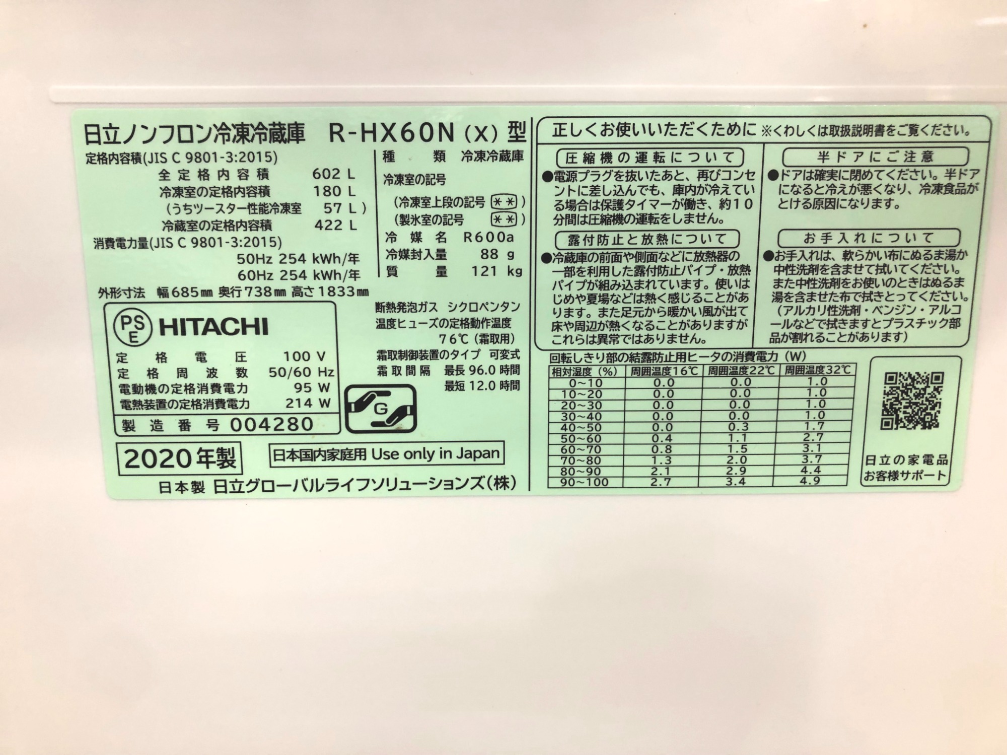 型番      :R-HX60N