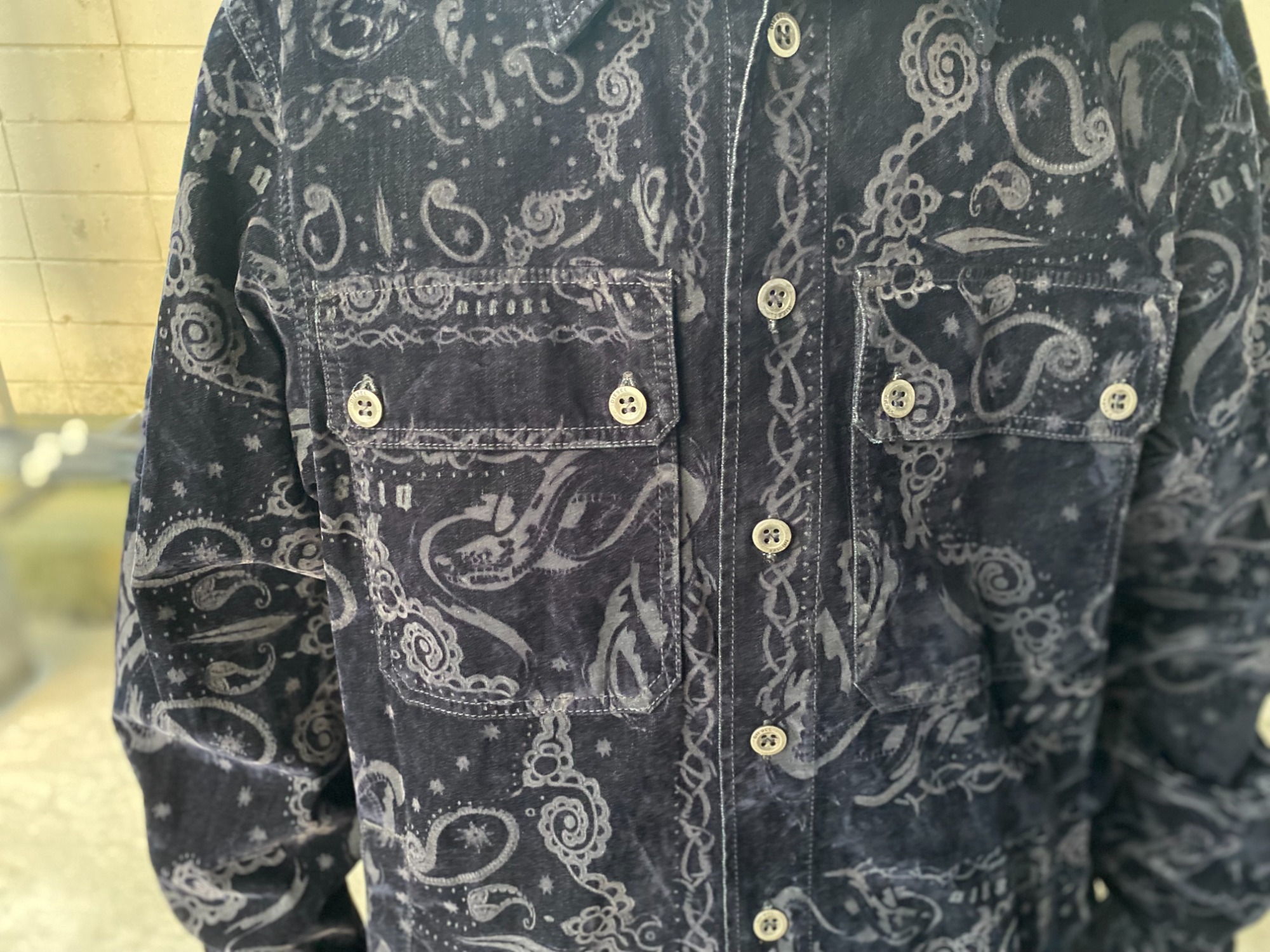 ペイズリー柄の凝ったデザインのシャツジャケットです。