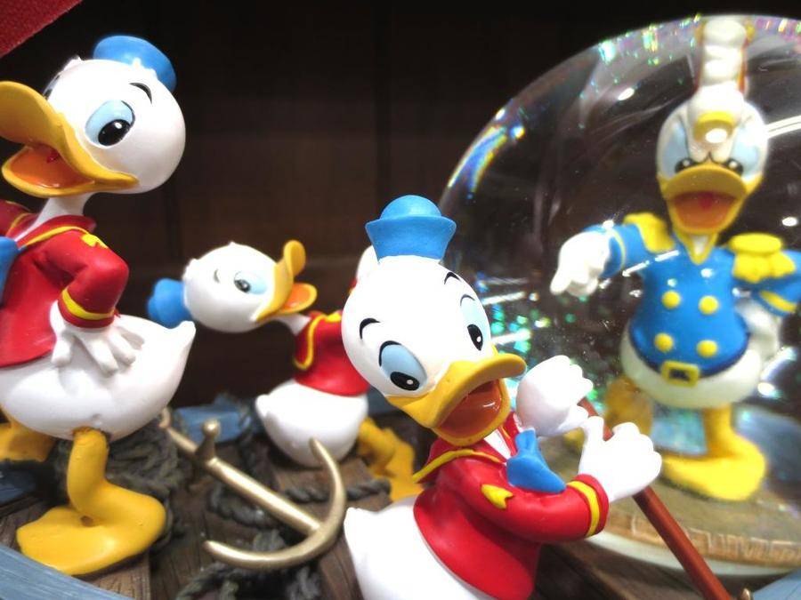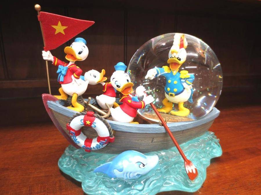 今回紹介するのはドナルドとその甥っ子のヒューイ、デューイ、ルーイたちが船に乗ったスノーグローブです。