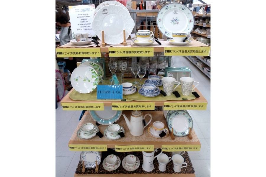 またこちらの食器棚に是非いれたくなるようなブランド食器も数多く展示しております。