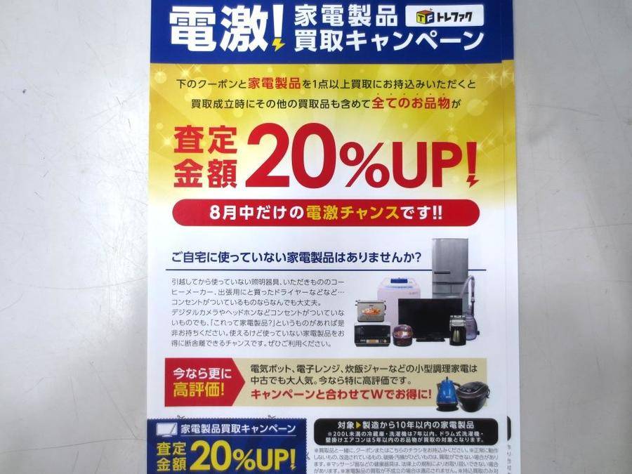 下のクーポンと家電製品を1点以上買取にお持込いただくと