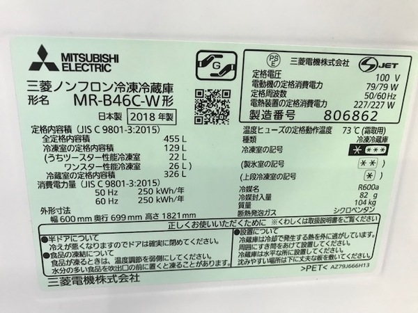 MITSUBISHIの2018年製5ドア冷蔵庫が買取入荷致しました!【トレファク横浜青葉店】