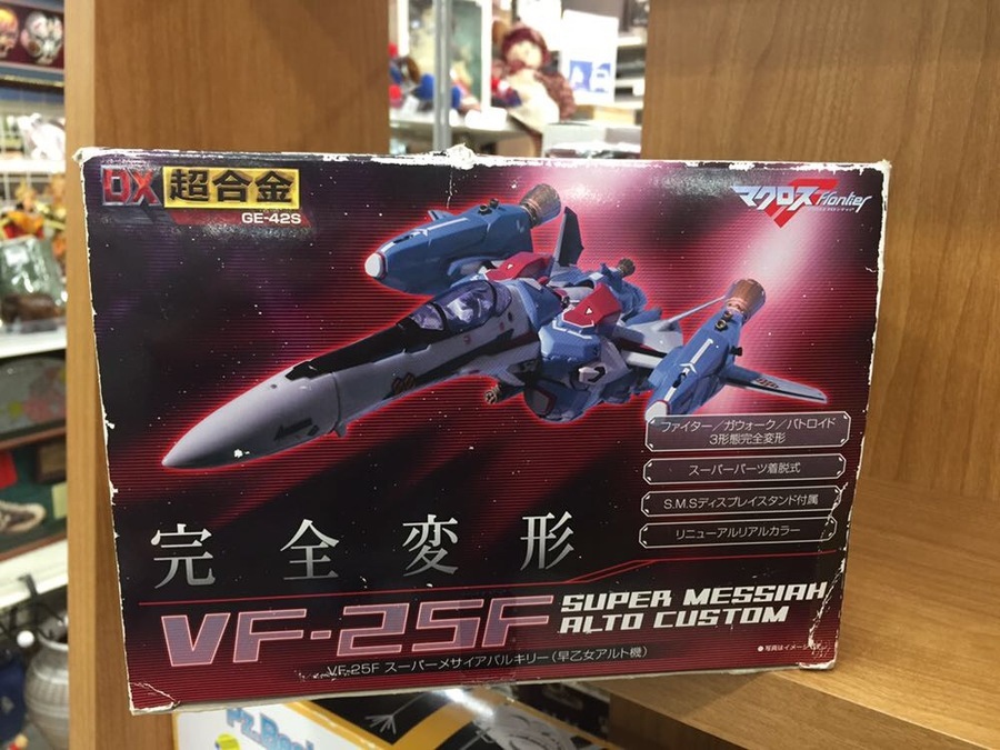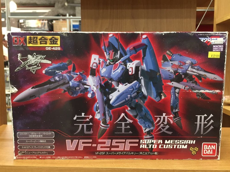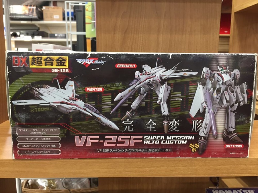 マクロスと言えばバルキリー!今回ご紹介するのはDX超合金スーパーメサイアバルキリーです。マクロスF(フロンティア)の主人公、早乙女アルトの愛機VF-25FのDX超合金を入荷致しました。気になるお客様!是非当店へお越しくださいませ!