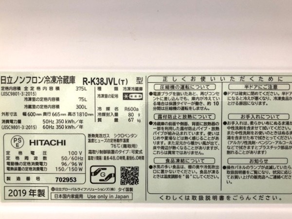 2019年製 HITACHI (日立) 3ドア冷蔵庫 買取入荷!!【トレファク横浜青葉店】
