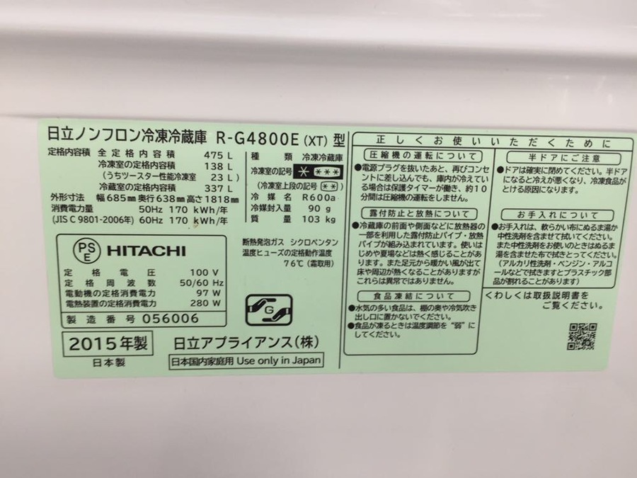 【スマホで購入】HITACHI(ヒタチ)の6ドア冷蔵庫 買取入荷!!【トレファク横浜青葉店】
