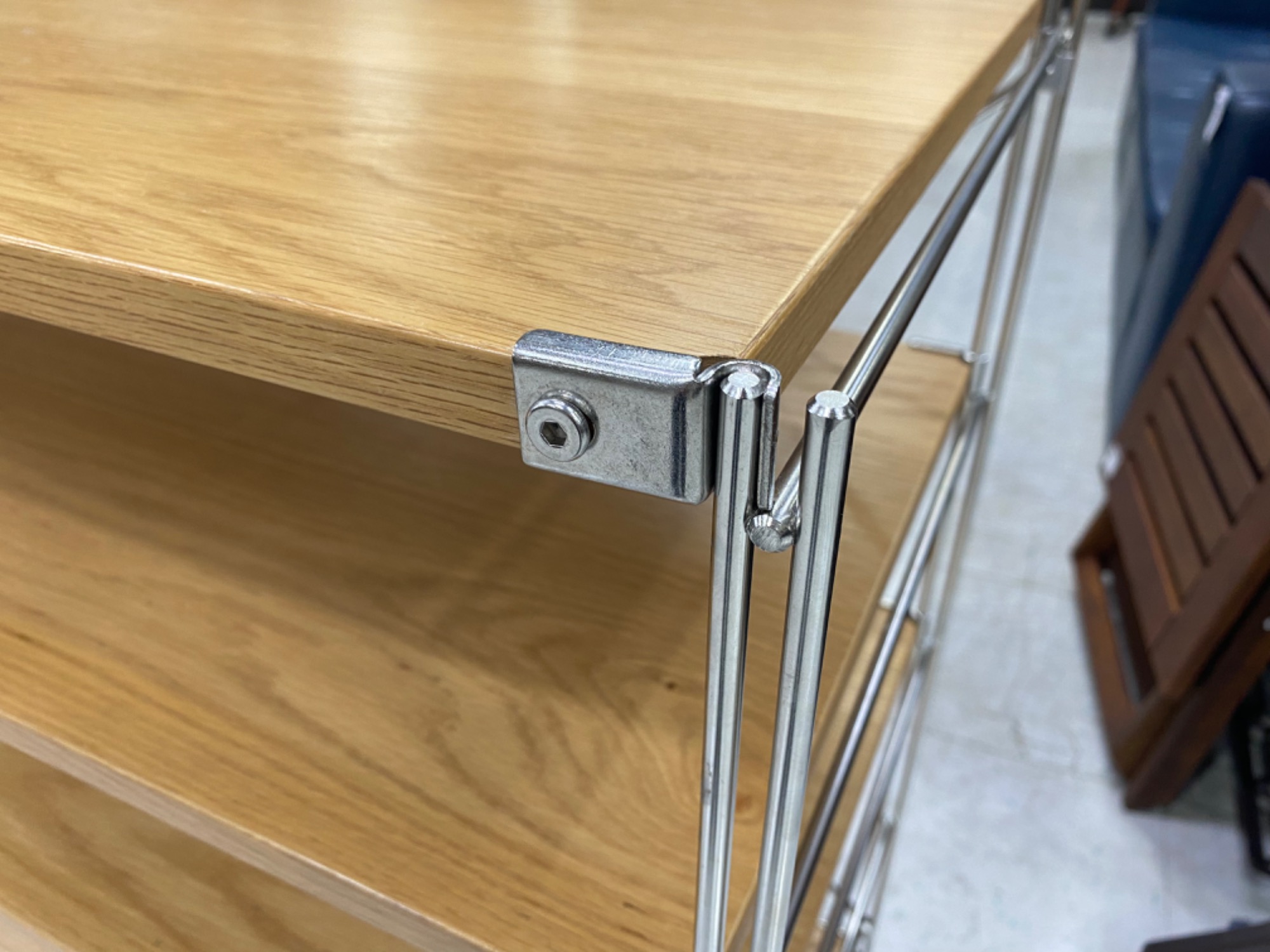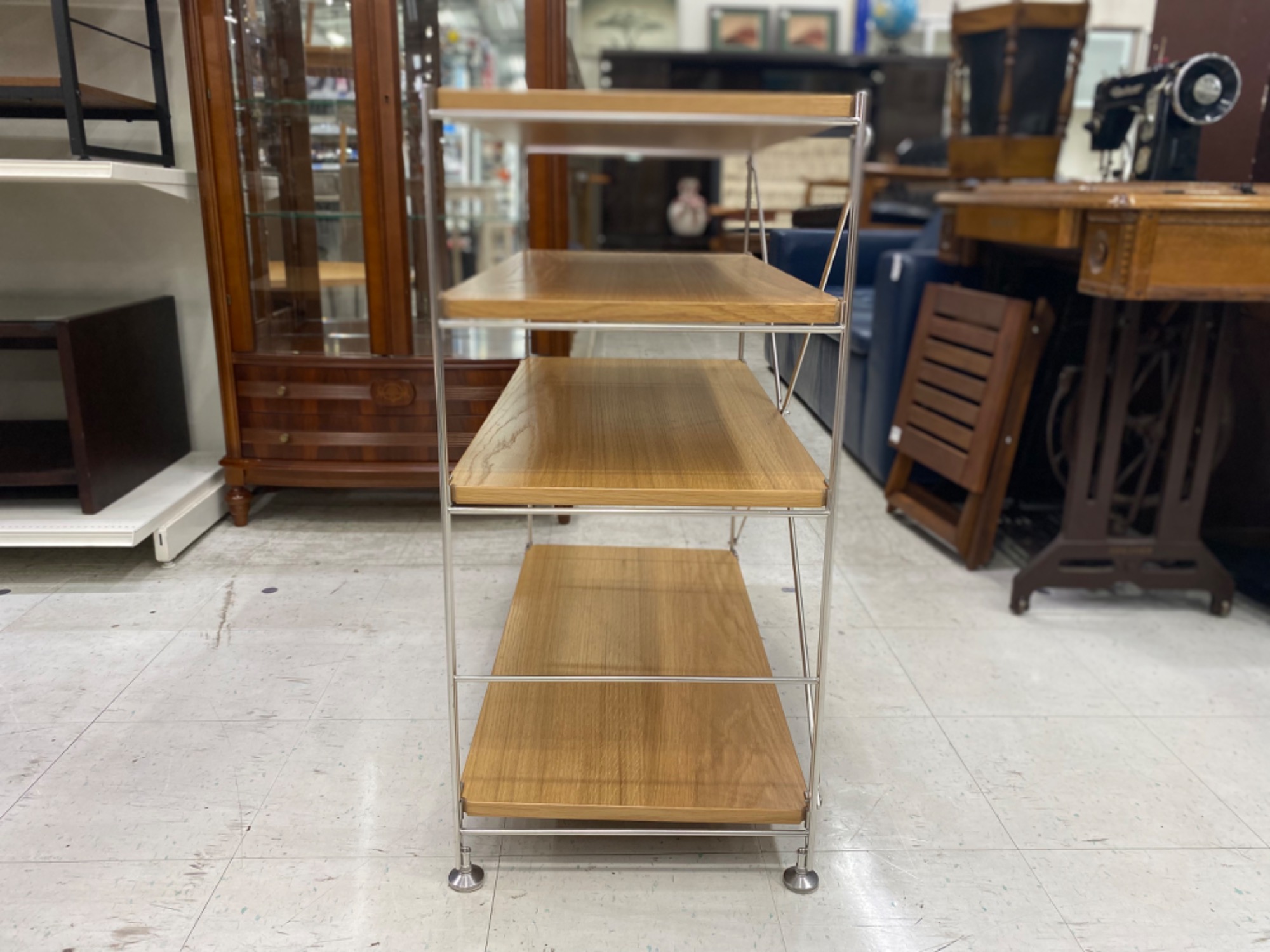 ステンレスとオーク材を組み合わせたオープンシェルフとなっております。